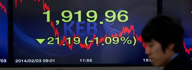 Una pantalla muestra el valor del índice Kospi en Seúl (Corea del Sur).