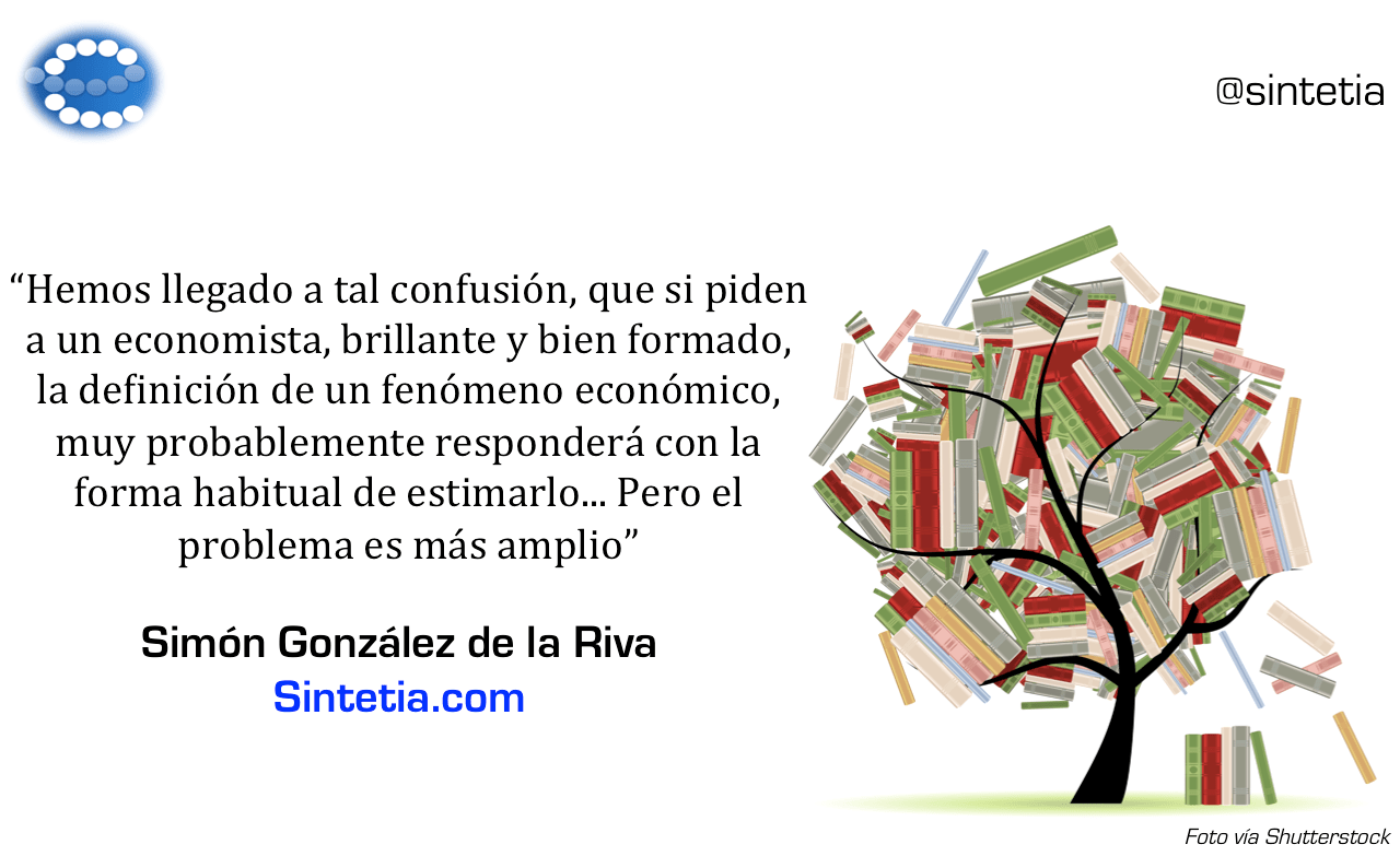 La confusión entre fenómeno e indicador, siendo el indicador una estimación de alguno de los efectos del fenómeno, ha crecido hasta hacerse mayoritaria, mainstream. Hemos llegado a tal confusión, que si piden a un economista, brillante y bien formado, la definición de un fenómeno económico, muy probablemente responderá con la forma habitual de estimarlo… Pero el problema es más amplio.